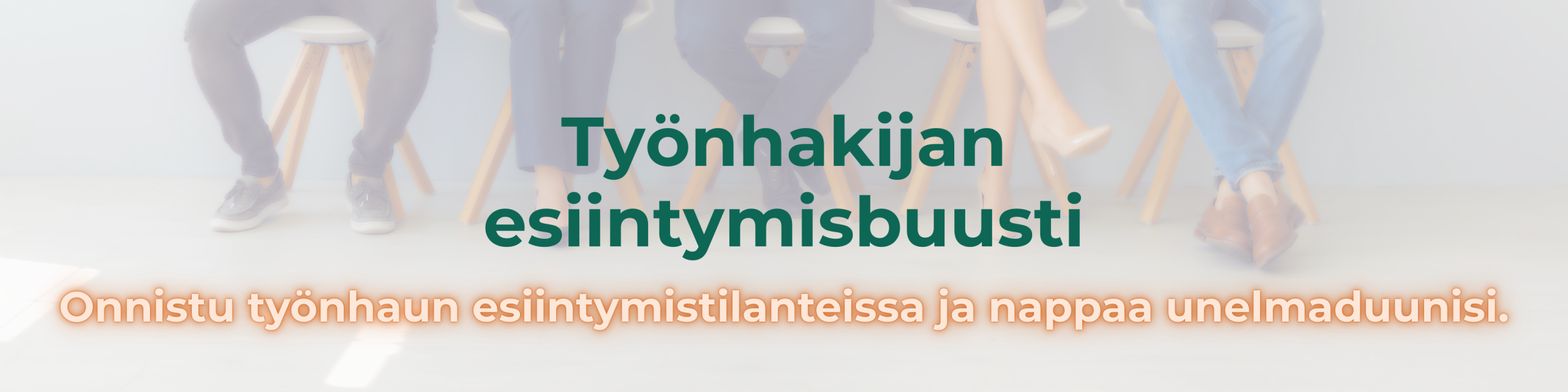 Työnhakijan esiintymisbuusti on käytännönläheinen intensiivikurssi, joka auttaa sua selkeyttämään ydinviestisi, hallitsemaan jännityksen ja esiintymään niin, että rekrytoija todella näkee ja kuulee potentiaalisi.